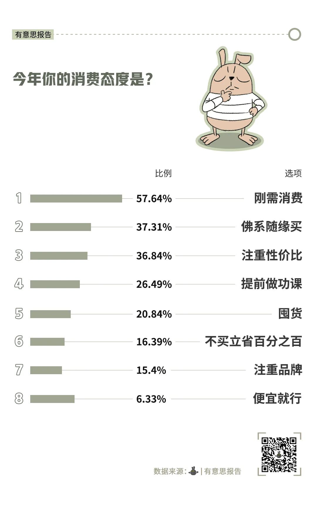 为了搞清楚“消费者在今年双11购物计划和消费态度出现了哪些转变”和“今年双11有哪些品牌最受关注”,有意思报告发起了“今年双11你真的不买买买了?”调查,共有2337位读者参加。