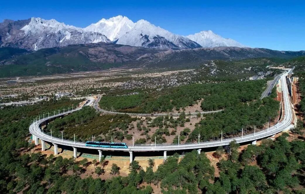 11月28日,丽江观光火车一期工程正式进入通车试运行阶段。由中车株机公司“量身定制”,装载中车株洲电机公司牵引动力装备的全景观光山地旅游列车穿梭于丽江古城与玉龙雪山之间。