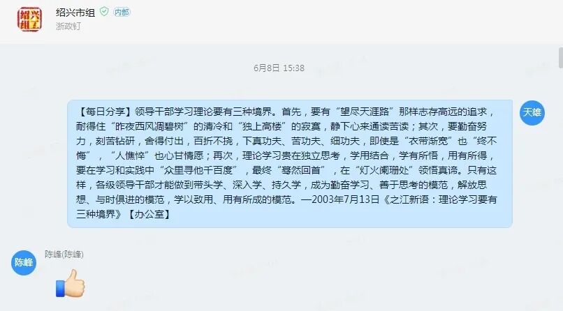徒弟将提炼后的好词金句分享到部机关工作群里