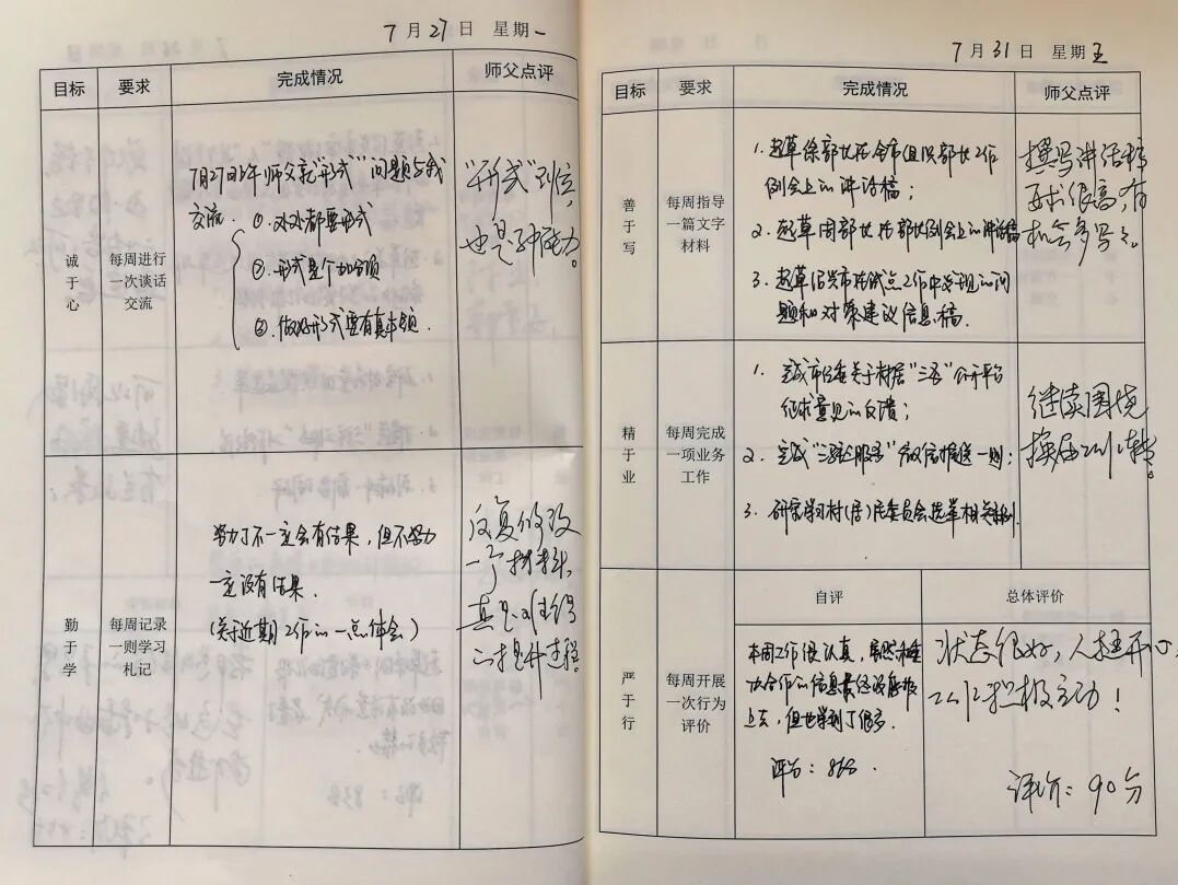 坚持“干什么学什么、缺什么补什么”的导向,师傅根据徒弟性格特点和问题短板,制定“每日分享”“共赢成长”“学习札记”等“一人一策”帮带方案。