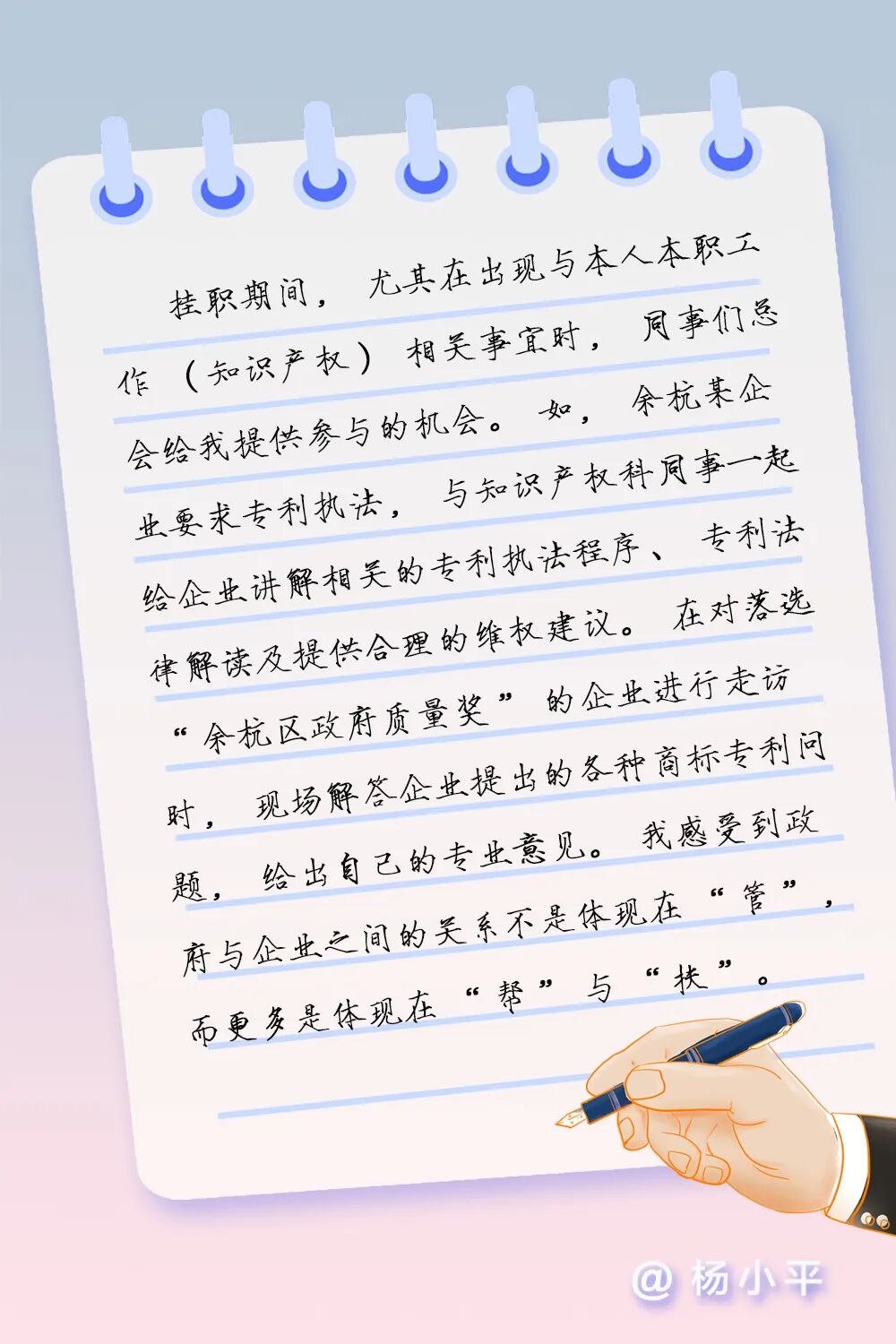 近年来,杭州市余杭区大力开展“亲清直通员”反向挂职活动,企业管理者到机关部门挂职,挂职单位涉及住建、数据、经信、招商、文创、规划建设、知识产权等多个部门和领域。
