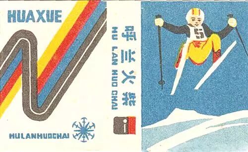 ⑧1985年黑龙江呼兰火柴厂出品的“滑雪”套花中的一枚。