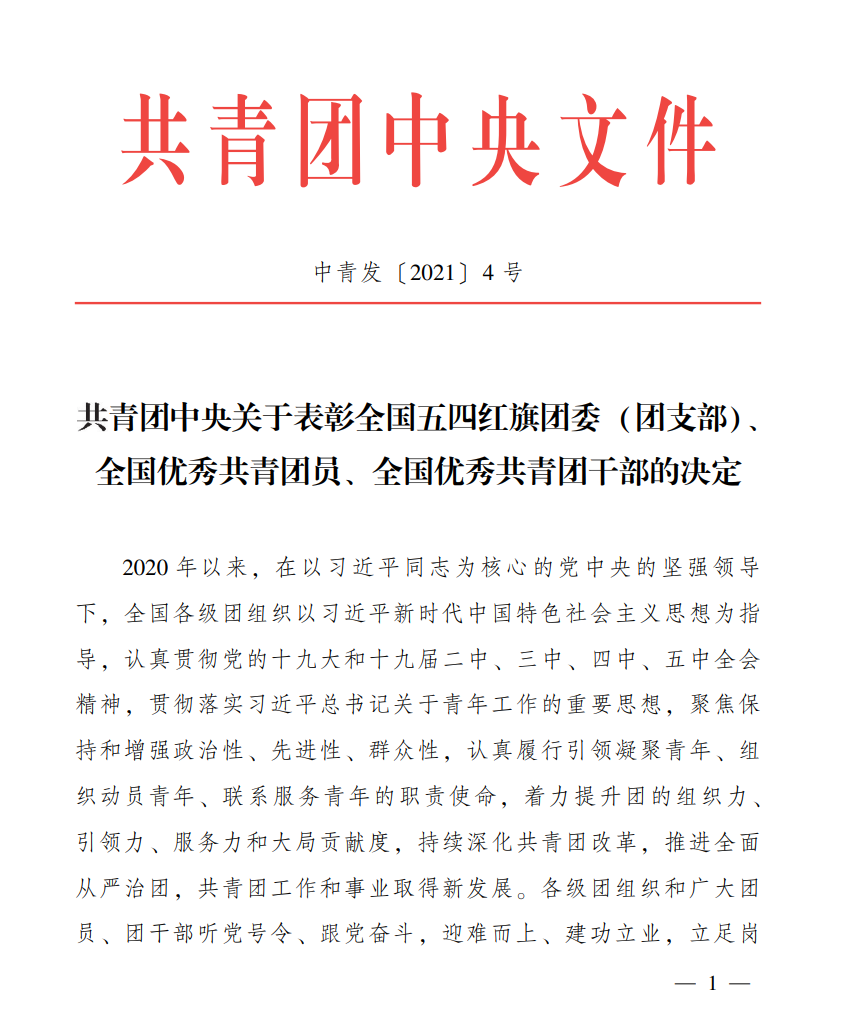 据悉,全国五四红旗团委是团中央授予基层团组织的最高荣誉。各级青年五四奖章是同级别共青团组织、青年联合会给予14至40周岁(年满14周岁、不满40周岁)优秀青年的最高褒奖。