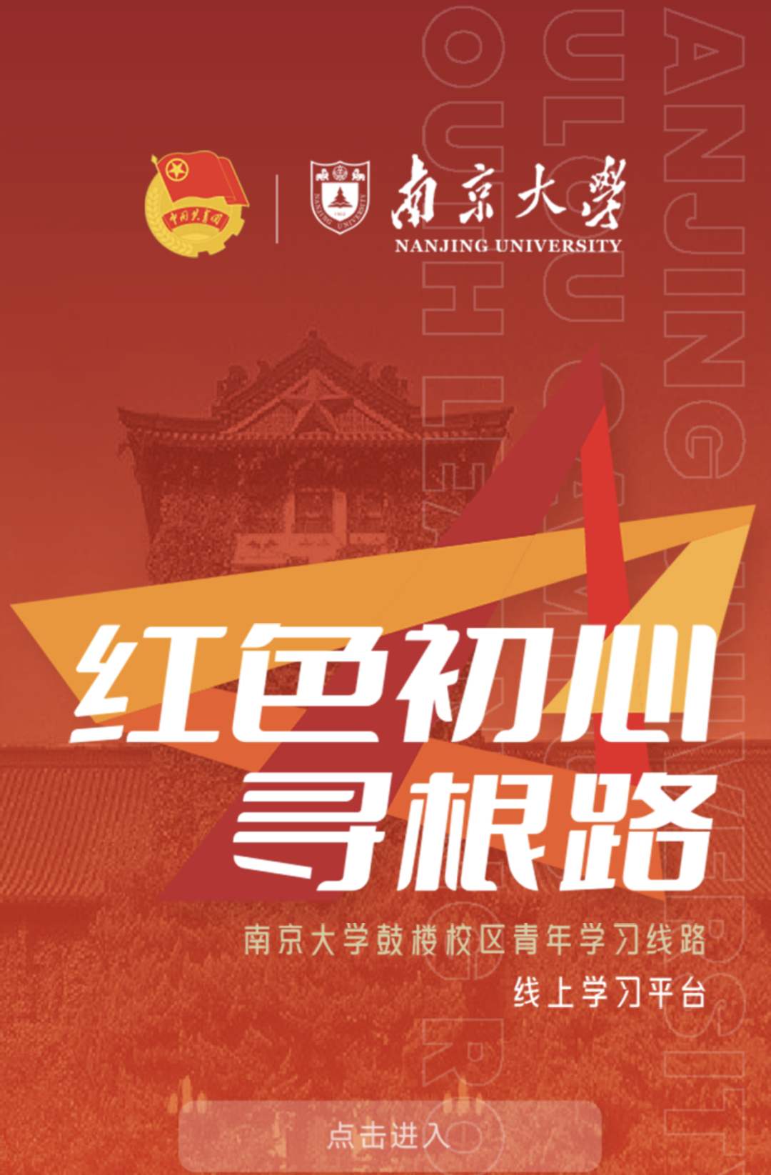 为进一步带领南大青年寻好初心之根、使命之根、精神之根、文化之根以及成长之根,学校共青团,依托鼓楼校区古建筑所承载厚重历史与时代精神的古建筑,紧扣南大特色、红色资源、青年元素,打造推出“红色初心寻根路”青年学习线路,引领南大青年进一步知史爱党、知史爱国、知史爱校。