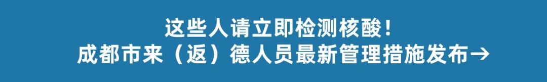二、合理安排出行。非必要不前往有本土新冠病毒感染者报告的地区,非必要不离德、不赴蓉。确需离德的,出行期间全程做好自我防护。返德后尽快进行一次核酸检测,检测结果未出前减少社会面活动,不参加聚集活动。