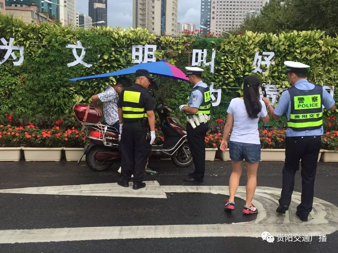 为有效督促、引导交通参与者遵守道路交通管理法规,进一步在社会层面营造 “文明城市共创建 文明交通共参与”的浓厚氛围,8月25日下午,贵阳交警联合云岩区文明办、交通1027在交际处路口开展了一场主题为“严查电动自行车违法与机动车不礼让斑马线”的执法微直播活动。