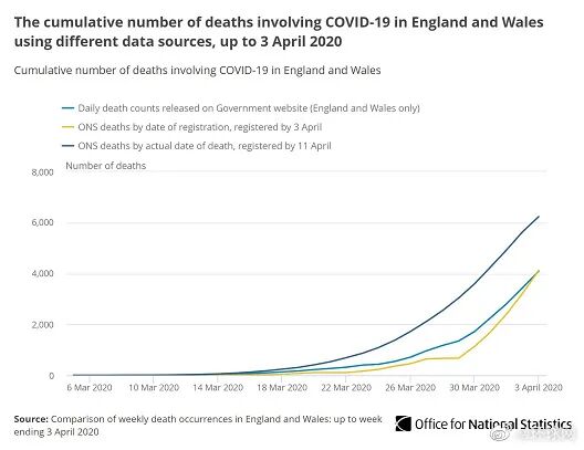 据央视新闻客户端,当地时间4月14日,英国首次公布医院外死亡的新冠肺炎病例数据,其中包括养老院等社会福利机构中的死亡病例,该数据高于目前英国政府公布的医院死亡病例数据。英国国家统计局14日公布的统计数据显示,截至4月3日,英格兰和威尔士地区新冠肺炎死亡病例6235例,高于同期英国公共卫生部统计的4093例死亡病例。