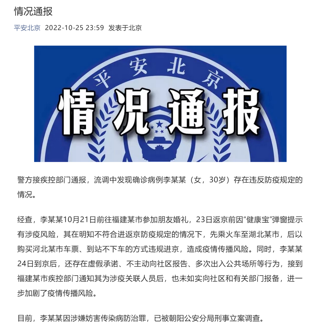 感染者302:通过社会面核酸筛查发现,现住朝阳区望京街道麒麟社3号楼。10月21日到京外参加婚礼,10月23日乘D3264、Z50次列车于10月24日抵京,当日进行核酸检测,10月25日报告结果为阳性,诊断为确诊病例,临床分型为轻型。