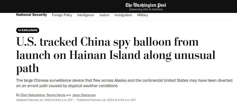 “这场对抗,可能从一开始就是错的。”《华盛顿邮报》称,中国外交部最早发布的关于气球因天气变化误入美国领空的声明“可能部分正确”,但美国政府并未向公众及时传递正确的信息。