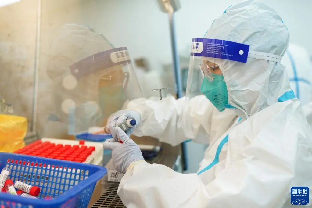 3月23日凌晨,同济大学附属同济医院内的核酸检测实验室灯火通明,工作人员紧张而有序地进行核酸检测工作。新华社记者 丁汀 摄