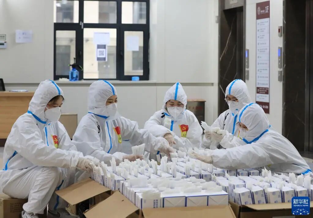 3月23日,吉林大学服务团队在分拣自测盒。新华社发(方卫东 摄)