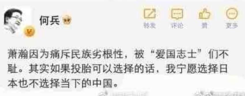如果有人谈爱国,谈历史,谈中日之间的血海深仇,那么就会被扣一个“小粉红”、“民族主义者”、“煽动仇恨”的帽子。
