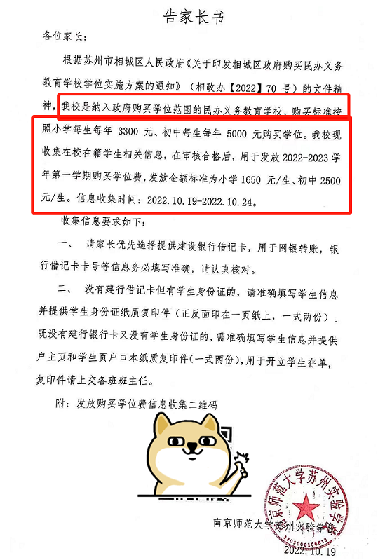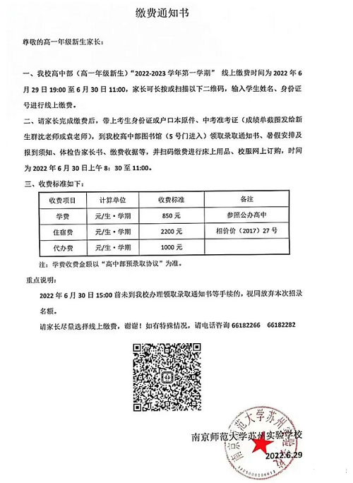 再后来,有家长爆料说,学校的收费标准2022年秋季入学的高一新生,直接按照每学期900元的学费缴纳。仿佛就侧面印证了南师大苏州实验学校民转公的说法...