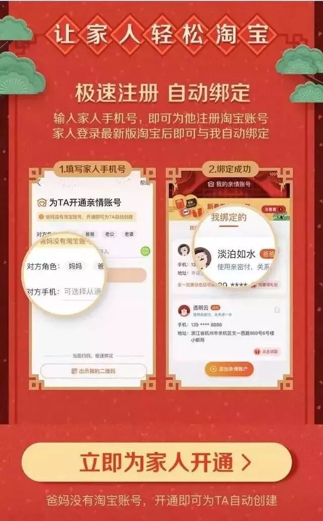 而在此过程中,如果按照信息提示操作,绑定了淘宝亲情账号,一人中奖,所绑定的家人也会一起中奖,从而实现奖品的成倍增加。