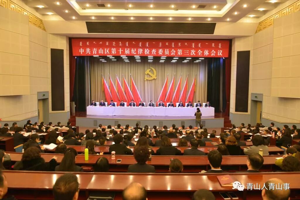 2月28日,中共青山区第十届纪律检查委员会第三次全体会议在500人会议室召开。青山区四大班子主要领导、区委各常委,区人大、政府、政协领导班子成员,区人民法院院长、区人民检察员院检察长;包头装备制造产业园区管委会主任、包头国际会展中心主任以及全区副科级以上干部和各学校、社区、村党组织负责人参加了会议。