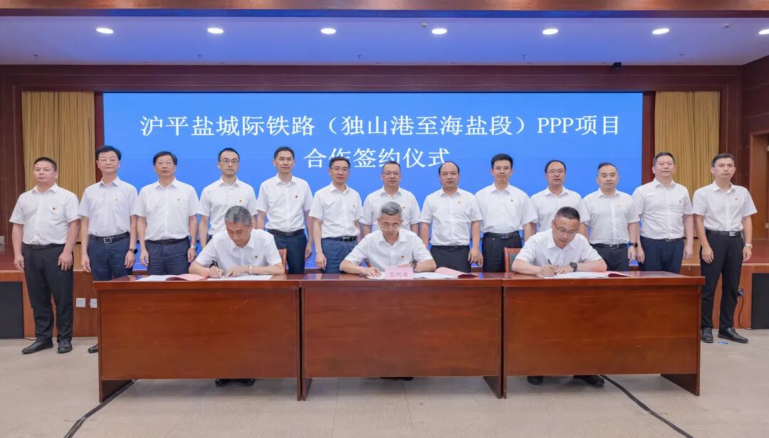 7月1日,平湖市交通运输局、浙江省交通投资集团有限公司、浙江省轨道交通建设管理集团有限公司在平湖签订沪平盐城际铁路(独山港至海盐段)PPP项目合同及投资协议,并成功组建了浙江沪平盐铁路有限公司。沪平盐城际铁路(浙江段)项目由政府和社会投资方合作,共同出资建设,为项目顺利开工、建设、投运提供坚强保障。