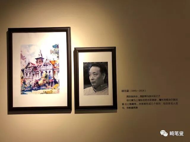 另一面墙上,有徐元章的照片,和简单的文字说明。还有他的两张水彩画作。