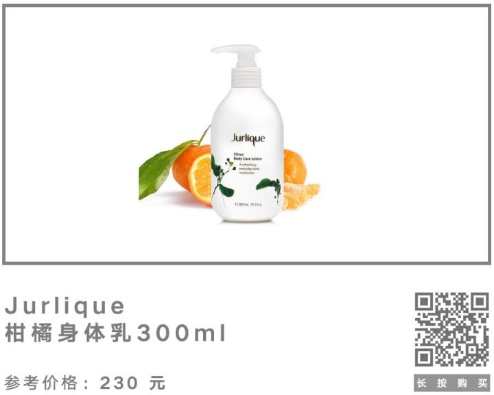它的质地比乳液稍微厚重一些,但是涂抹起来非常好吸收,肤感也比较清爽。而且,清香又温暖的柑橘香气,大概是最适合秋冬的味道了吧~