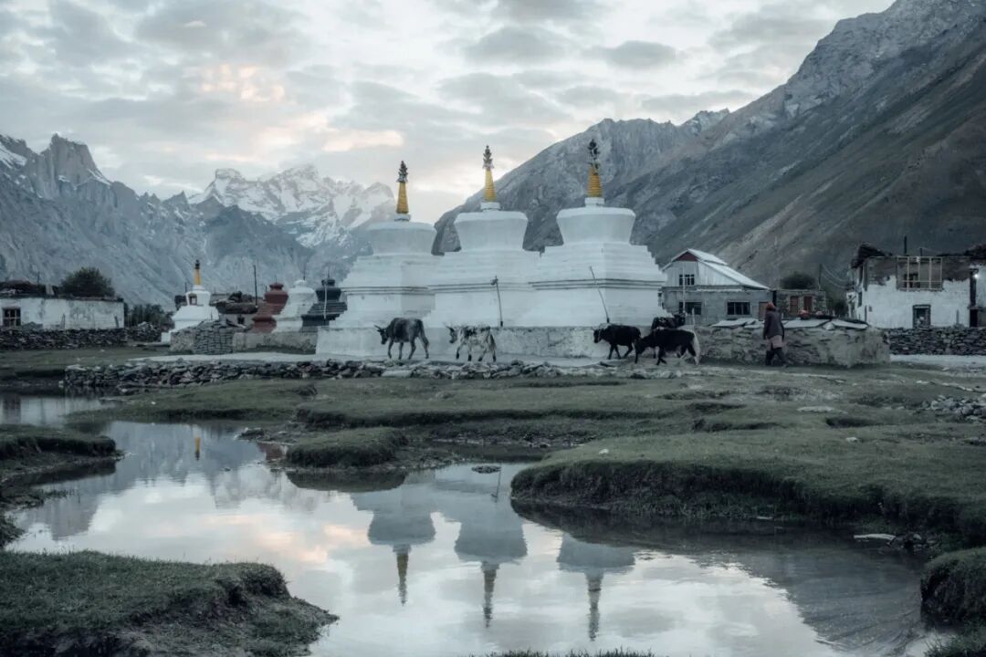 之后我每次进藏斯卡都会在兰顿住一晚,早上从卡吉尔出发,下午抵达这里休息一会儿,可以笃悠悠地去村子里转一转,到河边走一走,看看当地人的生活。清晨傍晚在村里都可以直接看到日照金山,风光水平约等于稻城亚丁洛绒牛场的级别。