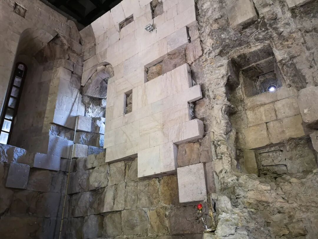 不过巴格拉特主教座堂原有的遗迹颇有规模,重建工作基本上是针对主体建筑的,外围的城墙、小礼拜堂大体保留了重建前的原貌。尤其那个小礼拜堂别具一格,只剩四面墙壁,上面没有屋顶,里面摆放着长凳和讲台,仍在继续使用。