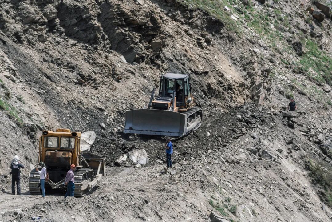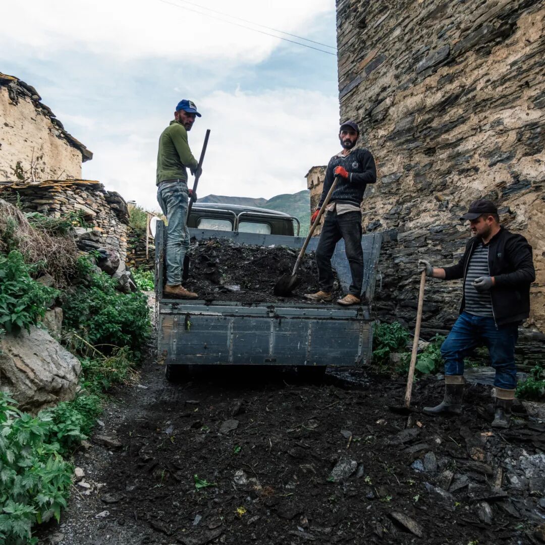 相比从梅斯蒂亚进入乌树故里,更艰难的是从另一条路离开。这里有条近路可以往南直接回到库塔伊西,但每年只开放三个月。我第一次9月来乌树故里是从这条路离开的,但第二次5月份来的时候路却还封闭着走不了。走这条路最大的好处是不用走回头路出去,但也非常考验车况和车技。路段整体上年久失修,极为泥泞坑洼,大多数地方非常狭窄只容单车通行,并且很长一段是前不着村后不着店的无人区,在狭隘幽暗的山林里穿行。我在路上看到一座冰川,冰川下面的村庄已经废弃。听说这边由于全球变暖灾害频发,雪崩、山洪、山体滑坡等灾害迫使不少居民成为生态难民不得不搬迁出去。在这条单车道的路上行车,我一直担心会在危险的地方遇到会车,结果一路上根本一辆车都没碰到,可见此地的荒芜。当最后终于开到村庄的时候,颇有一种逃出生天的感觉。