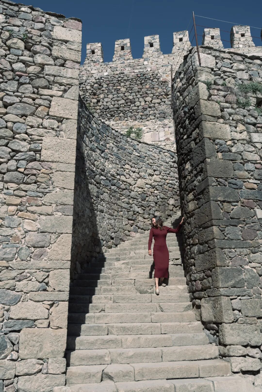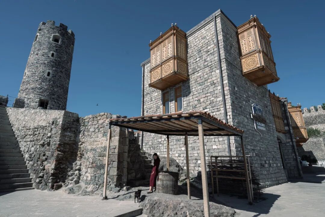 走进这座城堡看的话会发现一件更加诡异的事情,城堡顶上飘扬着格鲁吉亚代表基督教的十字架国旗,城堡内最为醒目的建筑却是一座奥斯曼风格的清真寺,其他建筑的风格也各种混搭,跟格鲁吉亚别的地方都不大一样。