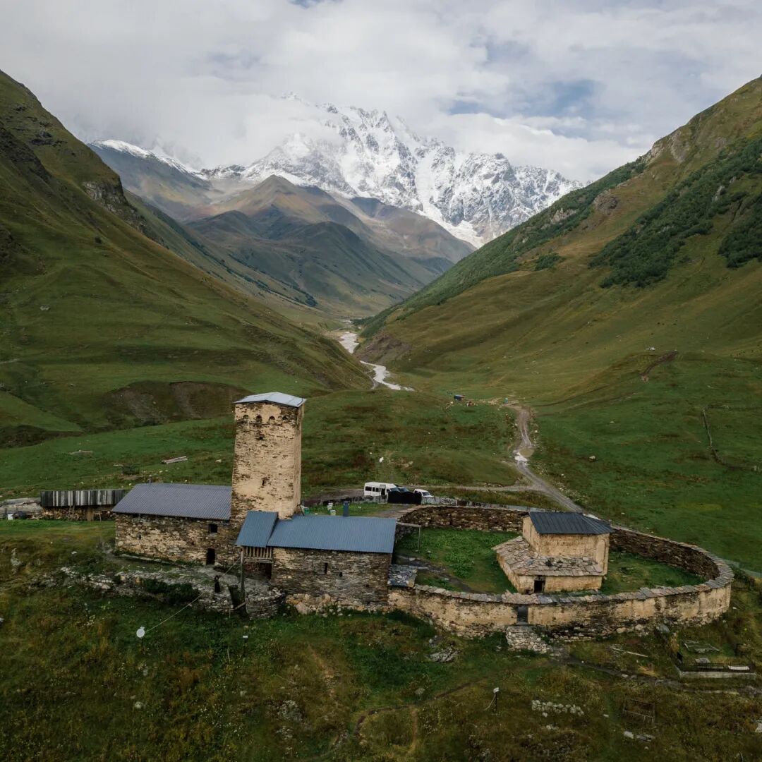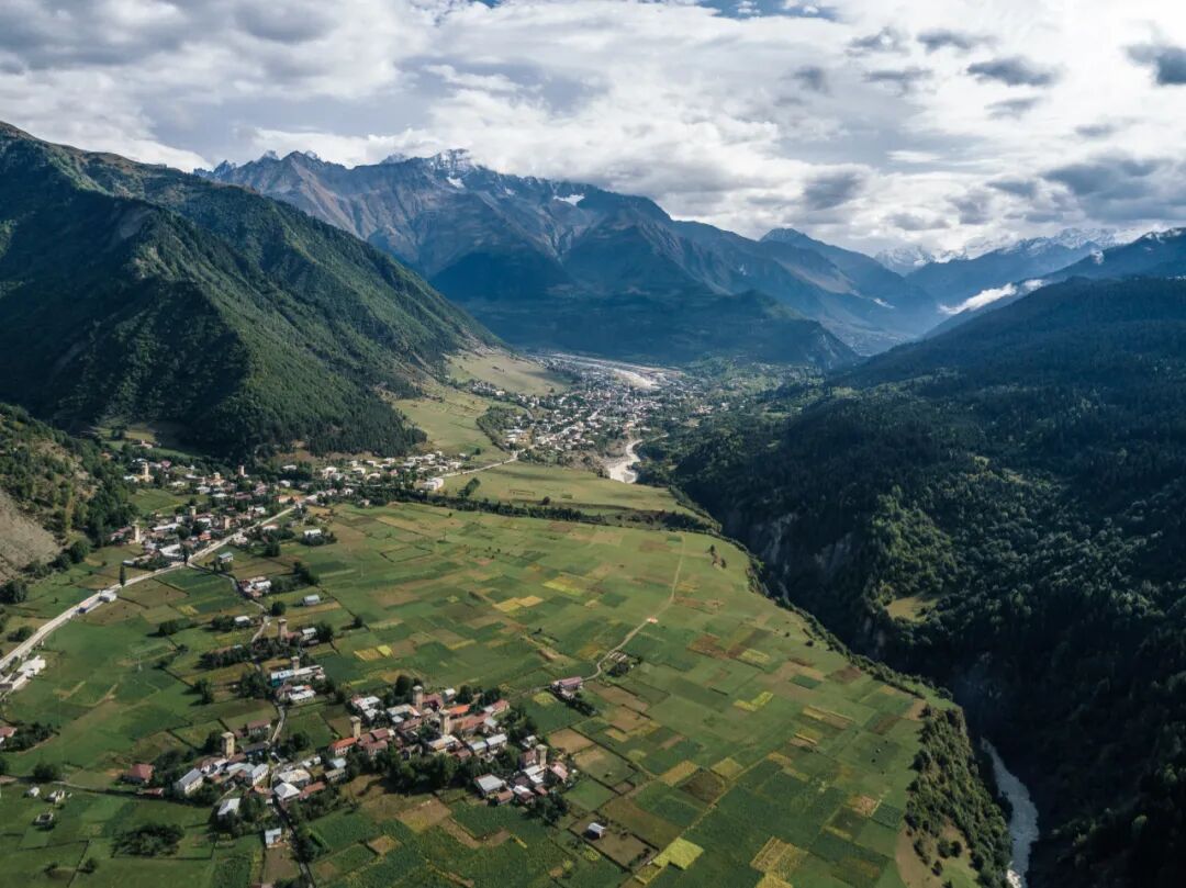 进入斯瓦涅季首先抵达的是梅斯蒂亚(Mestia),这段路上的风光可以用壮丽来形容,差不多是我们国内康藏的级别。梅斯蒂亚的地理位置在整个外高加索独一无二,北边是大高加索的主山脊,而南边也有一排高耸的雪山,拥有360度的全景雪山。在特定的位置还能看到高加索最独特的雪峰乌什巴山(Ushba),这座双子峰虽然只有4810米,却因其独特的外观颇受瞩目,同时也被认为是高加索地区最难攀登的雪峰。