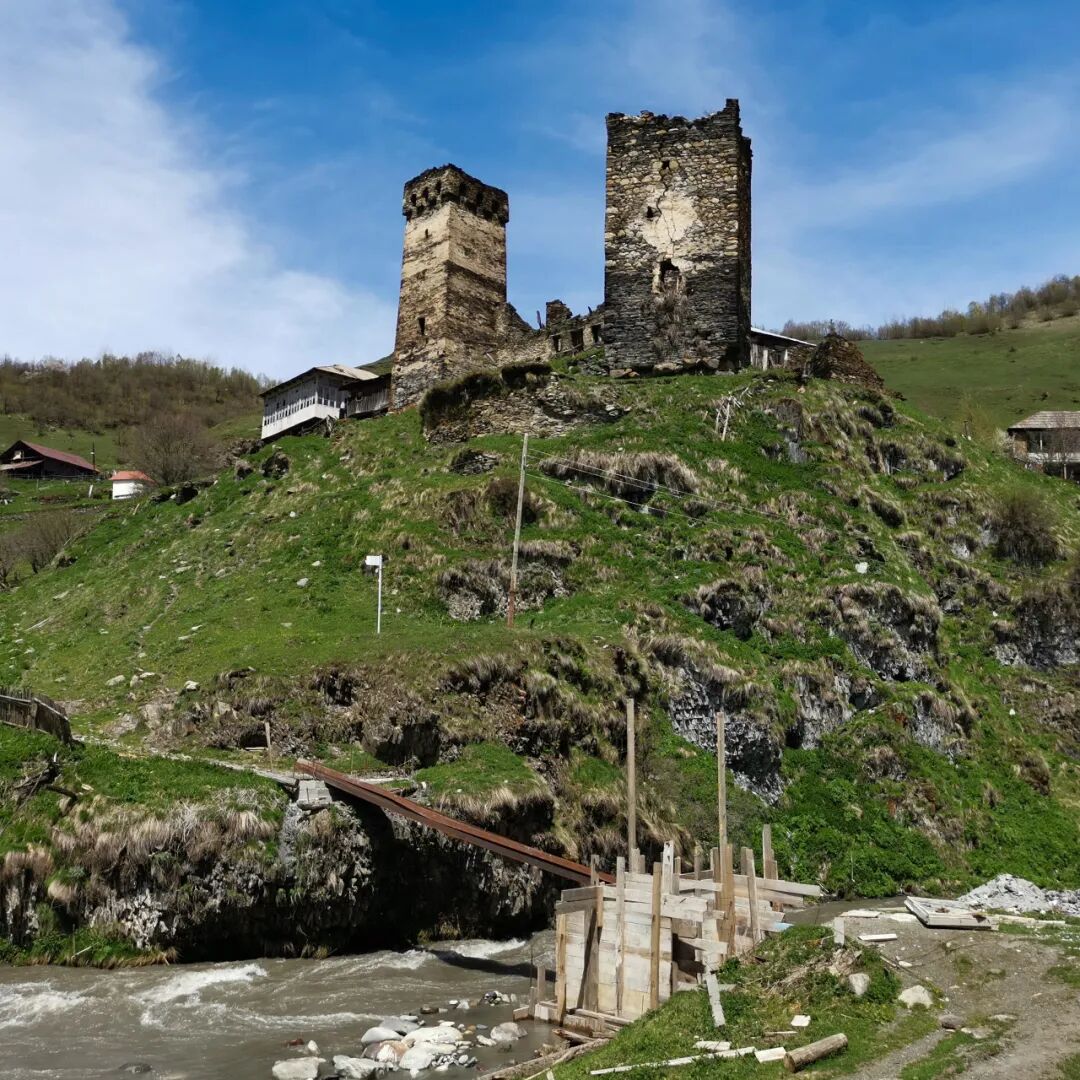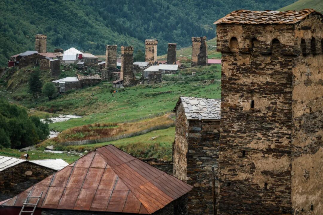 部族仇杀、多民族聚居、频繁的外族入侵,大高加索地区作为一个“是非之地”的特点在斯瓦涅季地区得到了终极的体现。斯瓦涅季村落的一个重要特色就是有许多用来进行防御的碉楼(Svan Tower),外观和作用都跟四川丹巴地区嘉绒藏族的碉楼非常相像,相隔万里的两个地方居然发展出了如此类似的特色建筑,这大概就是山地民族的“趋同演化”。不过斯瓦涅季的碉楼最多只有四个角,不像丹巴碉楼发展出了六角、八角,甚至最多13个角。