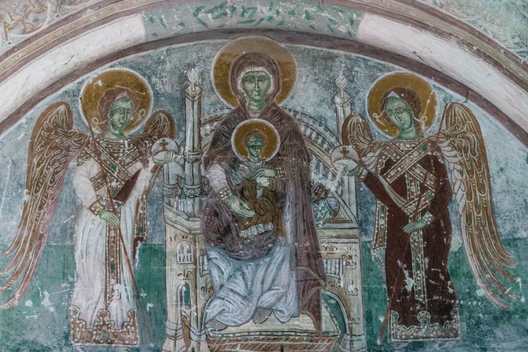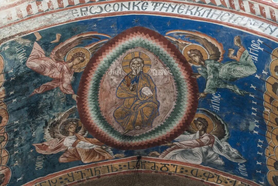 从历史角度来看,格拉特修道院曾经是格鲁吉亚的知识文化中心,作为重要的神学研究院,培养过不少格鲁吉亚科学家、神学家、哲学家;然而从艺术角度来讲,你会觉得这些东正教派的圣像绘画既缺乏透视,也不够细腻,奇怪的比例感常常看得我啼笑皆非。其中一座教堂穹顶上的全能基督肖像画绘制于12世纪,那个基督的眼睛和鼻子都是歪的,一丁点儿庄严肃穆的感觉都没有,看起来好像儿童画一样。
