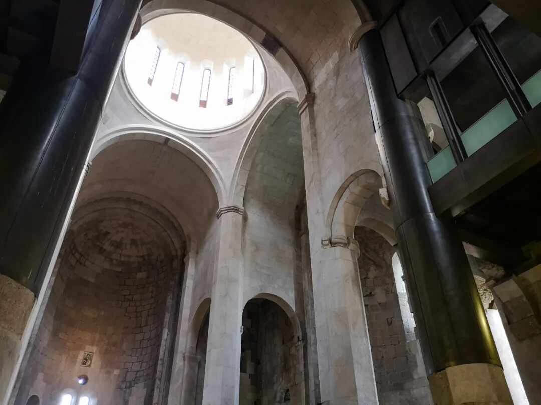 如果你现在去巴格拉特主教座堂,第一眼看到这座建筑可能会觉得有些奇怪,它那个重建的大穹顶跟外高加索地区典型的教堂穹顶很不同,是炮弹型的尖顶,带有一定的弧度,而非像典型亚美尼亚教堂的正圆锥形穹顶。