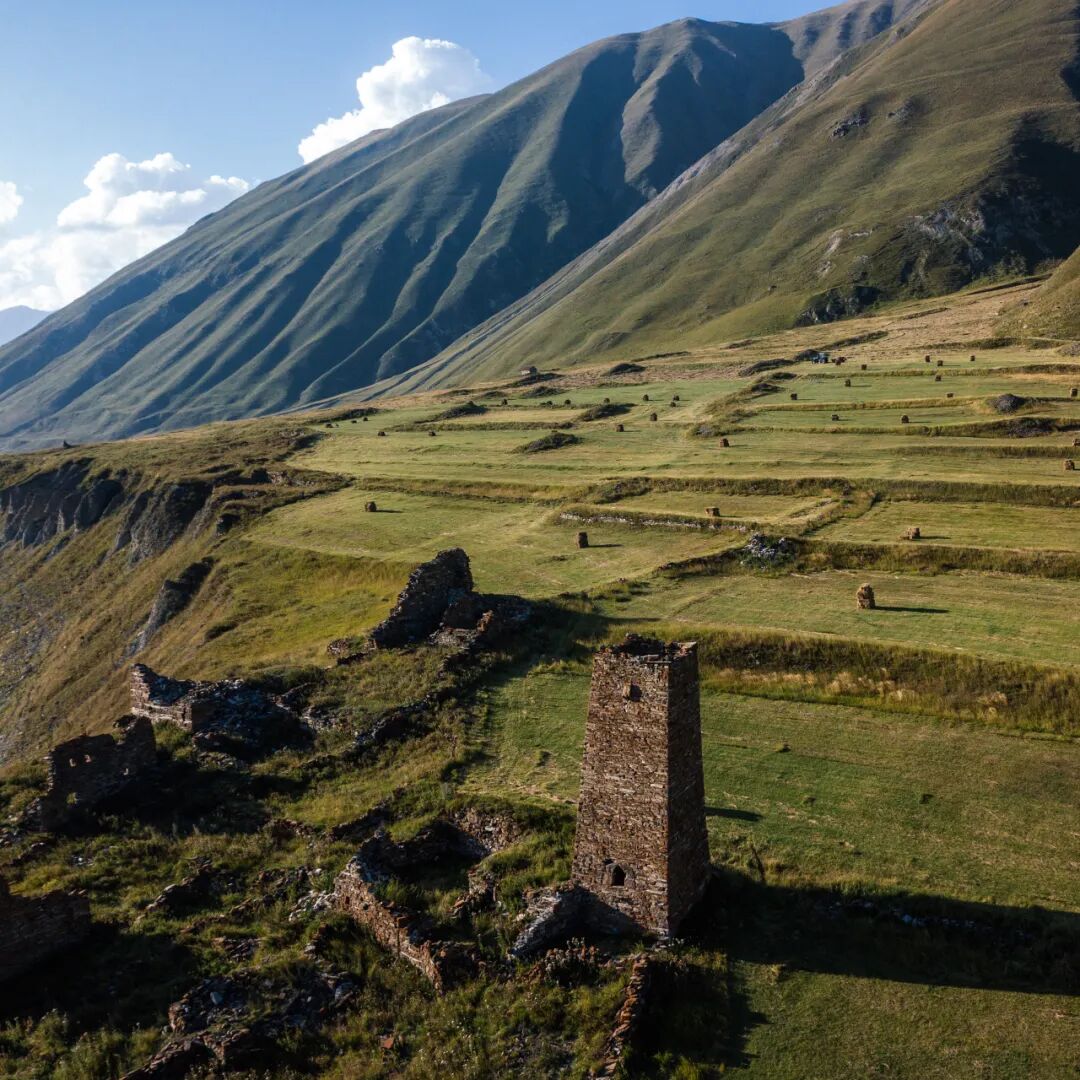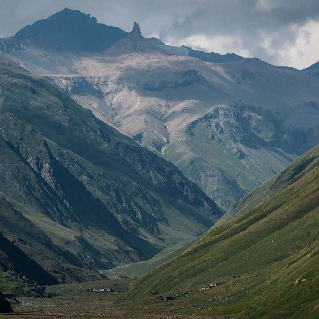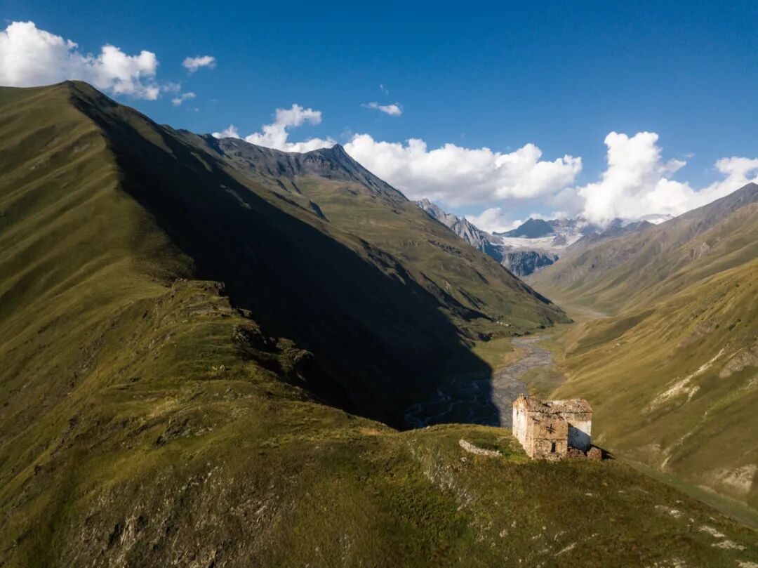 卡兹别克地区西边紧邻着奥赛梯,在距离斯特潘茨明达镇十多公里的地方,可以进入特鲁苏峡谷(Truso Gorge),我在前面章节里提到过的前欧洲最高的村庄瑞斯村(Resi)正是在这座峡谷里,如今由于军事管制原因被撤空了。特鲁苏峡谷中的路况极差,我两度驱车深入,第一次侥幸走到了公路尽头的军事检查站,一路上颇为惊险,涉水路段连车牌都被冲得掉了下来;第二次在半路上便遇到悬崖落石将路堵死,不得不退了出来。峡谷中的风光格外壮美,路上零星散落着几座碉楼,以及一些被遗弃的村庄废墟;峡谷深处有一个修道院,如今变成了可以让游人歇脚的客栈;公路的尽头是一座军事检查站,检查站上方的扎卡哥里要塞(Zakagori Fortress)废墟引人遐想,而我们则不得不止步于此。