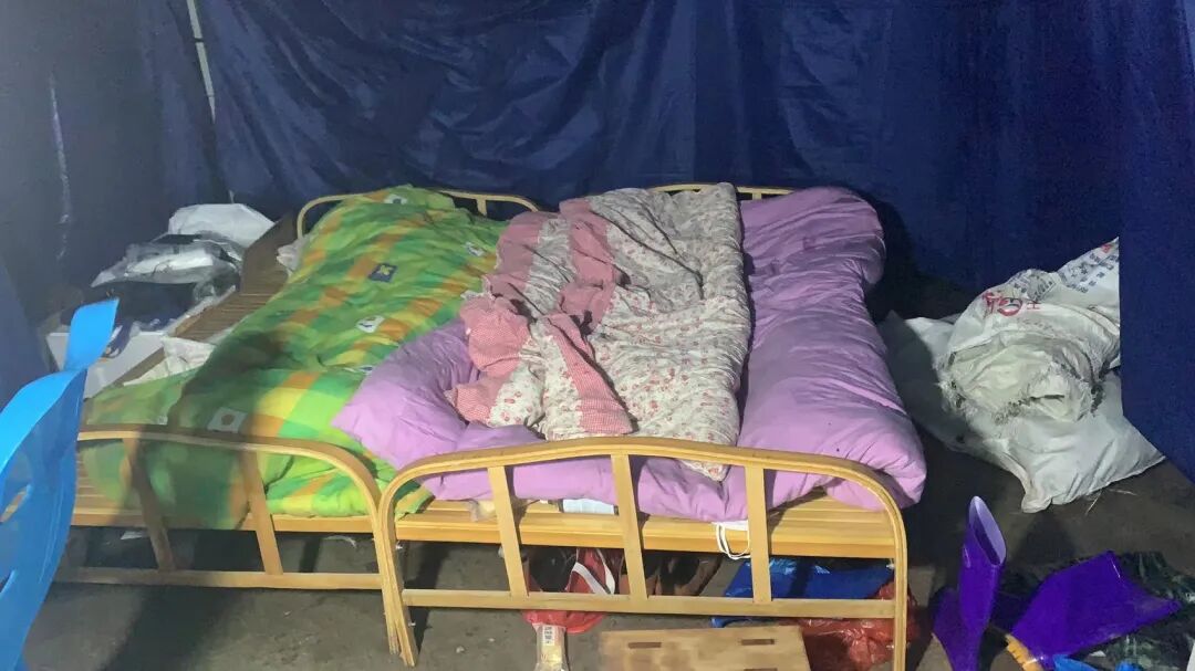康佳小区门口临时搭建的帐篷里的两张单人床,廖文吉就在此休息