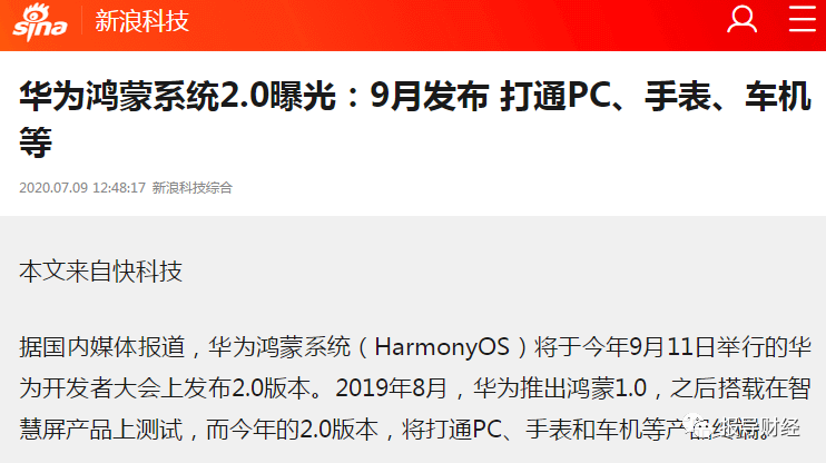 据有关媒体报道,华为计划将在今年9月11日,正式发布自有操作系统:鸿蒙2.0版本。