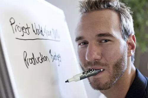 因为,真正改变命运的,并不是我们的“运气”有多好,而是我们对待生活的态度。肢体的残疾,霸凌,父母最开始的疏离...所有这个世界最初的“恶意”,不仅无法摧残Nick,19岁那年,他给学校致电,推销自己的演讲,经历了52次回绝与闭门羹,终于,在第53通电话后,他得到了一次5分钟时常的演讲机会。演讲台上,面对台下上万名观众注视的双眼,他台风稳健,自信沉着,思路清晰。用饱含磁性的嗓音,风趣幽默的语调,发自心底的笑容,向每位观众传递着他不同的人生经历下的思考。激励着每个人:无论生活给予了什么,别放弃,坚持下去!如今的Nick,已经完全不在意他人投来的讶异眼光,也不在意别人如何评价自己。如今的他,不仅没有缺少很多人都拥有的自信、快乐的能力,同时实现了绝大多数普通人无法成就的事情:成为两家国际公益组织的霸道总裁和CEO;荣获“澳大利亚杰出青年奖”同时,他也是足迹踏遍全世界的魅力演说家,将正能量传递给每一个人。他还能用脚趾在一分钟时间内敲击键盘打出43个字符。每年,他接到来自世界各地数以万次的演讲邀请,他的足迹遍布全世界70多个国家。面对超过3000万名观众,发表了1600多场成功演讲。全世界的报刊,杂志,电视节目,新闻上,关于他的报道数以亿计。从残疾人,到名人政客,国家总统...都深深受到他的演讲启发。那些儿时霸凌,鄙视他的同学、邻居也成为了他的听众,为当年的行为深感抱歉。在又一次震撼人心的演讲过后,人群中,一位美丽的亚裔美女走进了他的生命。“我一直渴望爱情,但是我也曾深深自卑:我连牵心爱之人的手都没有,怎么能奢求爱情...”二人相识两年后的婚礼上,Nick终于找到了答案,他告诉妻子:“虽然我今生无法牵你的手,但我会用心握着你的心。”婚后,Nick不仅拥有了心爱的美丽妻子,也拥有了四个健康活泼的孩子。事业辉煌,家庭美满,他自己改写了生活原定的剧本章节。“我如今的生活,也并不是没有艰难险阻,我想说,现在的每一天我依然要去克服很多困难...但这就是生活!生活没有一帆风顺的,无论成功与失败,贫穷或富有,身体残缺或健全...