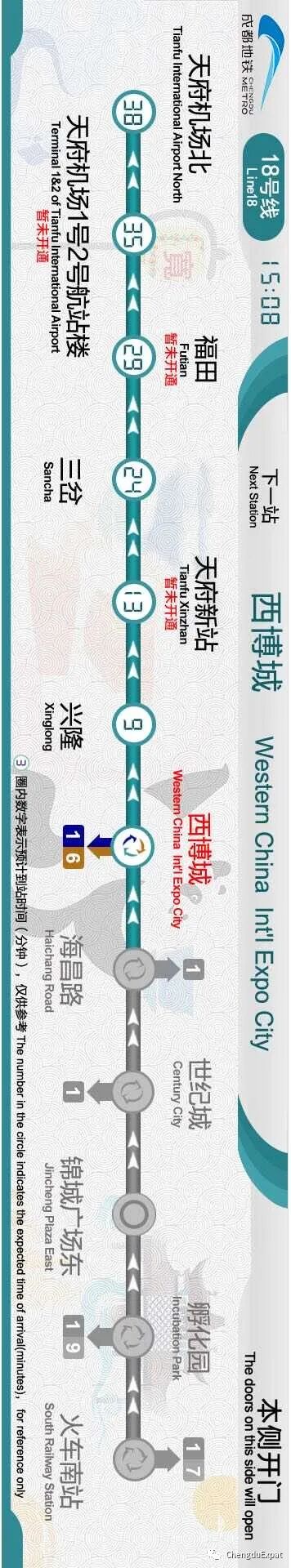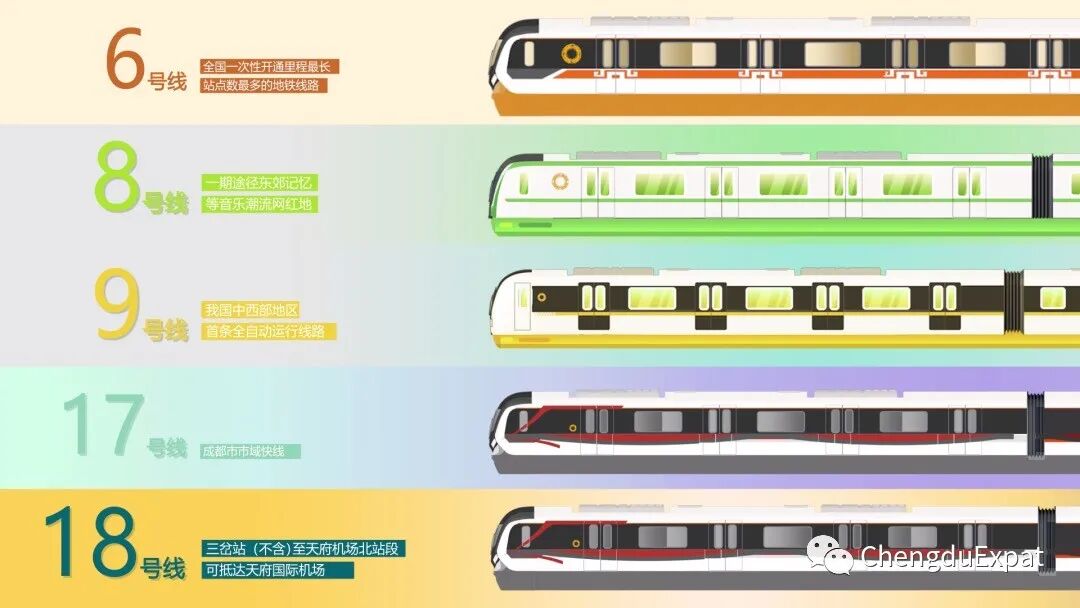 Line 6, the first phases of lines 8, 9 and 17, as well as the eastern section of Line 18 have been opened. Line 18 links Chengdu's city proper with its new airport, the Chengdu Tianfu International Airport, which is slated to begin operations next year. An automated train system has been deployed on Line 9. Trains on the line can automatically run, stop, turn on, and carry out inspections.