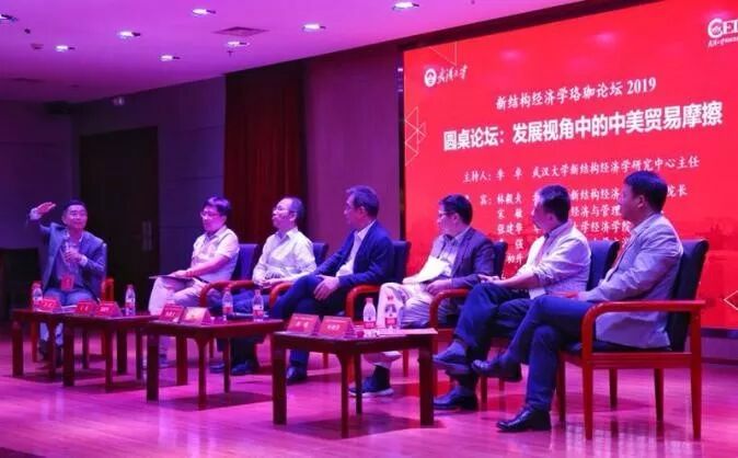 在“发展视角中的中美贸易摩擦”圆桌论坛上,北京大学新结构经济学研究院院长林毅夫、武汉大学经济与管理学院院长宋敏、华中科技大学经济学院院长张建华、中南财经政法大学文澜学院院长龚强、武汉大学经济发展研究中心联席主任叶初升、北京大学新结构经济学研究院学术副院长王勇从不同视角对中美贸易摩擦进行解读,并解答现场观众的疑问。武汉大学新结构经济学研究中心主任李卓主持论坛。