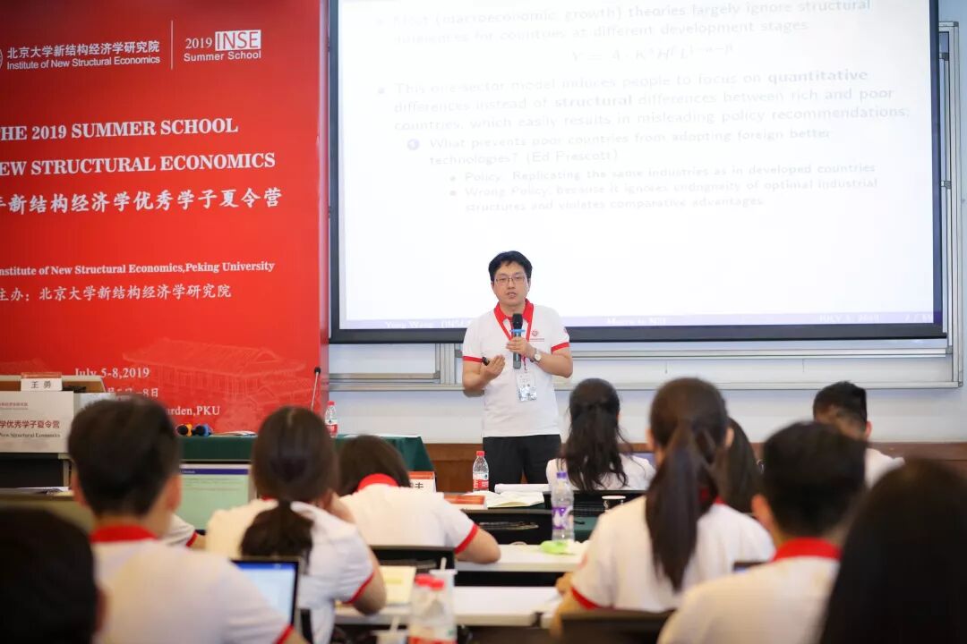 2019年7月5-8日,新结构经济学优秀学子夏令营在北京大学朗润园举行。7月5日下午,北京大学新结构经济学研究院学术副院长、副教授王勇和助理教授夏俊杰,共同介绍了新结构经济学子领域模块A——宏观与增长的特色和研究前沿。