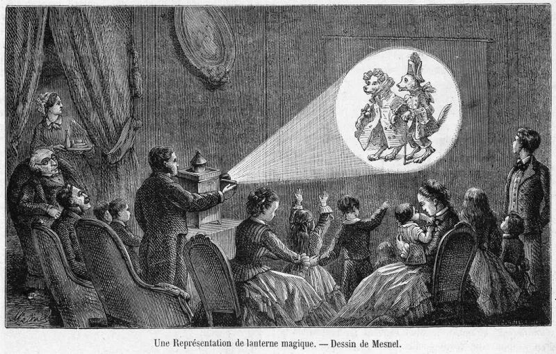 当时在法国时兴的幻灯片表演(来源:diaprojection.unblog.fr)