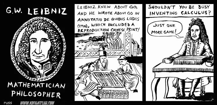 莱布尼茨曾在一篇论游戏的文章中援引并分析了利玛窦对围棋的描述(见"Annotatio de quibusdam Ludis", Miscellanea Berolinensia, 1710, pp.22-26;图片来源:quotesgram.com)