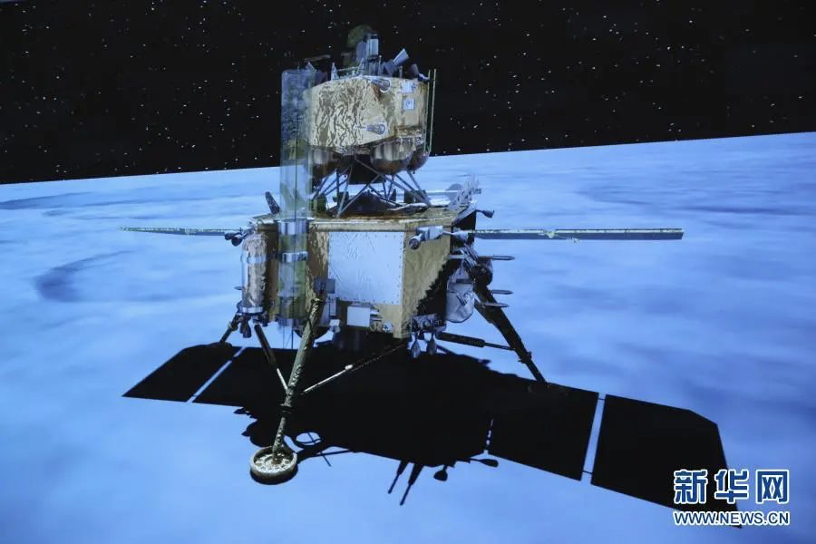 在北京航天飞行控制中心拍摄的落月后的嫦娥五号探测器,图源:新华网