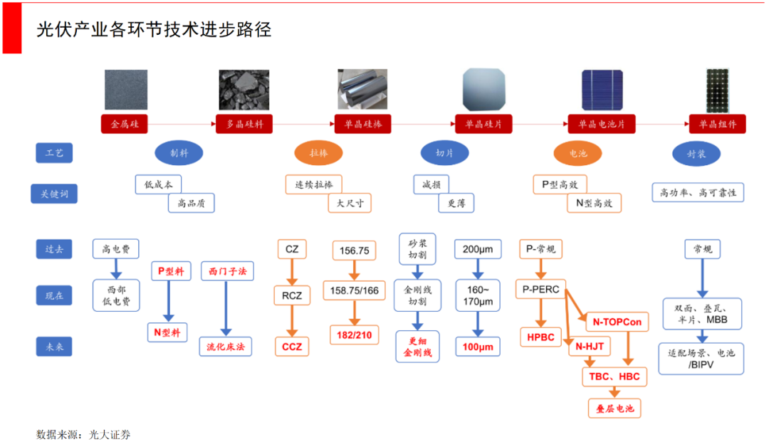 用一个业界流行的比喻,如果用汽车产业做对比,PERC相当于燃油车,TOPCon相当于混动车,HJT相当于纯电车,钙钛矿相当于氢能源车。