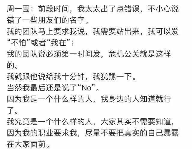 按理说,这个时候作为老公的周一围只要在第一时间为老婆说句话,形象说不定就会有回转。