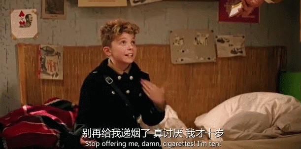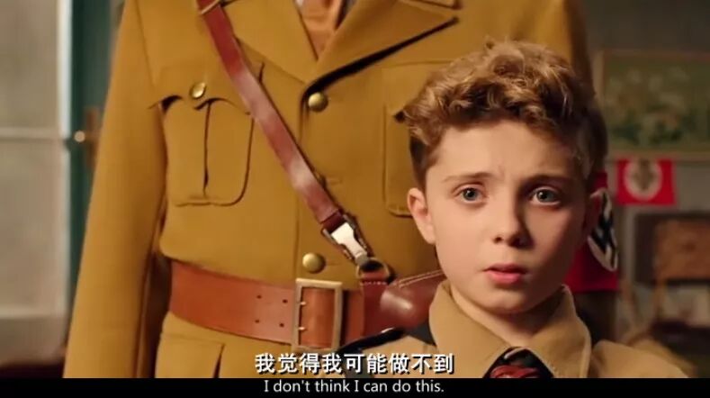 当乔乔因为家中的犹太女孩开始焦虑,希特勒总是给他递烟,乔乔说:“别再给我递烟了,我才十岁!”