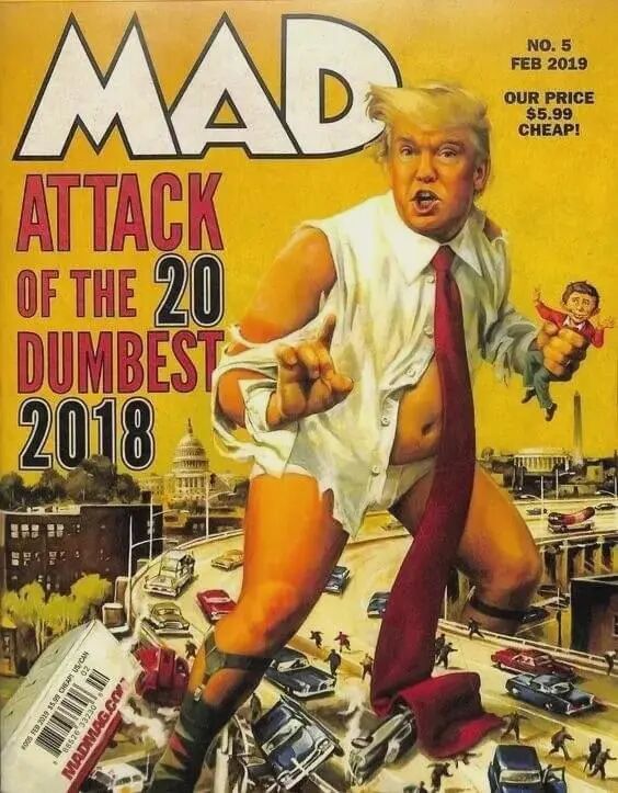 美国娱乐杂志《Mad》,把他讽刺为一只将城市踩在脚下任意践踏的 哥斯拉: