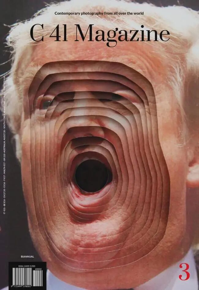 意大利的《C41》杂志,把川普的脸做成了立体效果。即使脸部已经放大变形,还是能明确辨认出:这,正是懂王的脸!