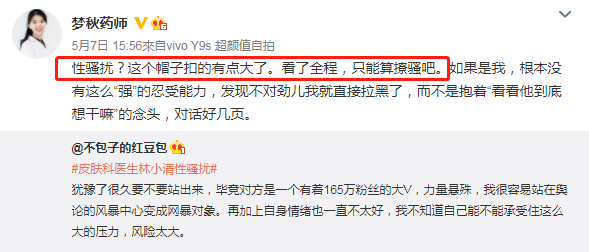 将自己遭遇医疗大V“皮肤科医生林小清”性骚扰的事情曝光。