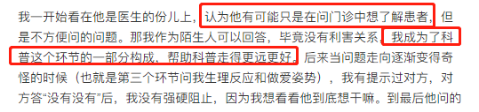 因为对方是医生,出于对职业的基础,以为这些问题都是调查或科普的一部分。