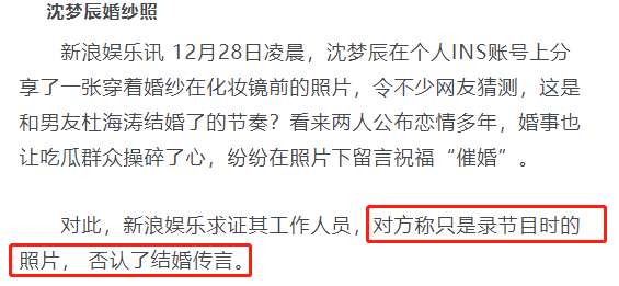 沈梦辰自己也会刷到“沈梦辰杜海涛正在筹办婚礼”的假消息。