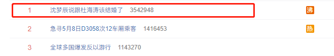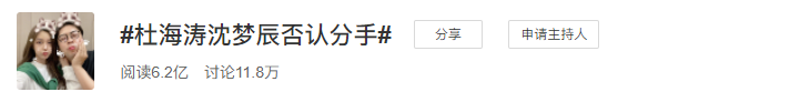 唯一能确定的,是沈梦辰和杜海涛上热搜的话题总是能围绕着:俩人分手了,俩人没分手,俩人要结婚了,俩人否认结婚几个点直接来回讨论。