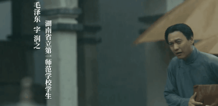 下雨天,泥泞崎岖的街市上,有形形色色的人,一个穿着布鞋的男人踏过泥水,护着一沓《新青年》,穿过乱糟糟的街市走来。